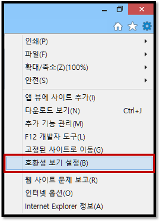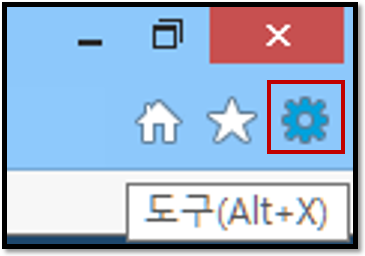1. Internet Explorer 창 우측 상단의 도구 버튼(Alt+X)을 클릭합니다.
